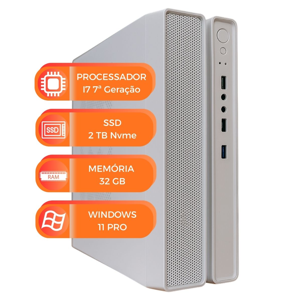 Computador Slim Branco MultiPC Intel I7 8ª Geração RAM 32GB SSD 2TB Nvme Windows 11